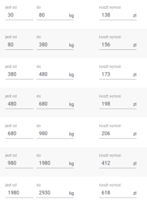 Koszt dostawy przelicza się automatycznie w koszyku w zależności od wagi całości zamówienia.