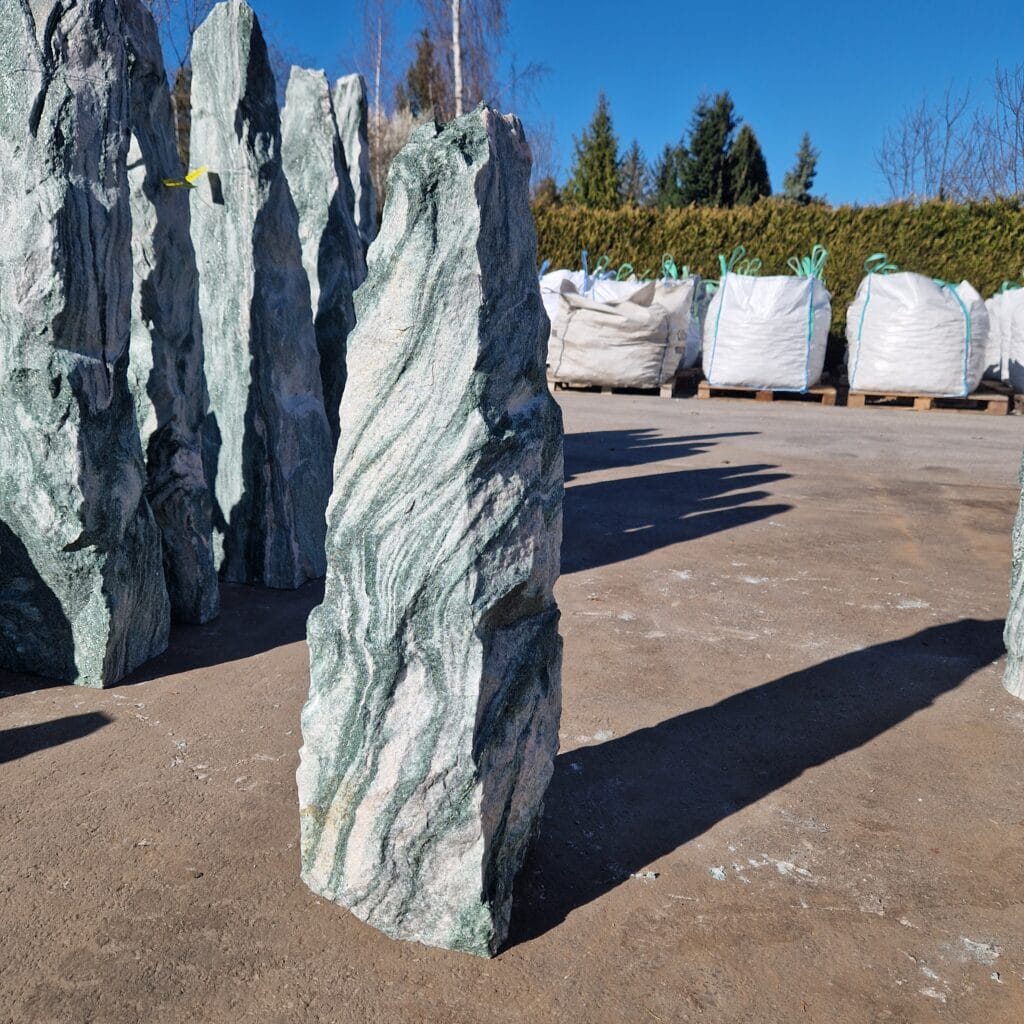Kamień Monolit Arctic Green to niezwykły kamień ozdobny pochodzący z Norwegii, charakteryzujący się nie tylko wyjątkową estetyką, ale także solidnym wykonaniem. Jego podstawa jest starannie cięta, co zapewnia stabilność w ogrodzie przez wiele lat. Kamień
