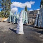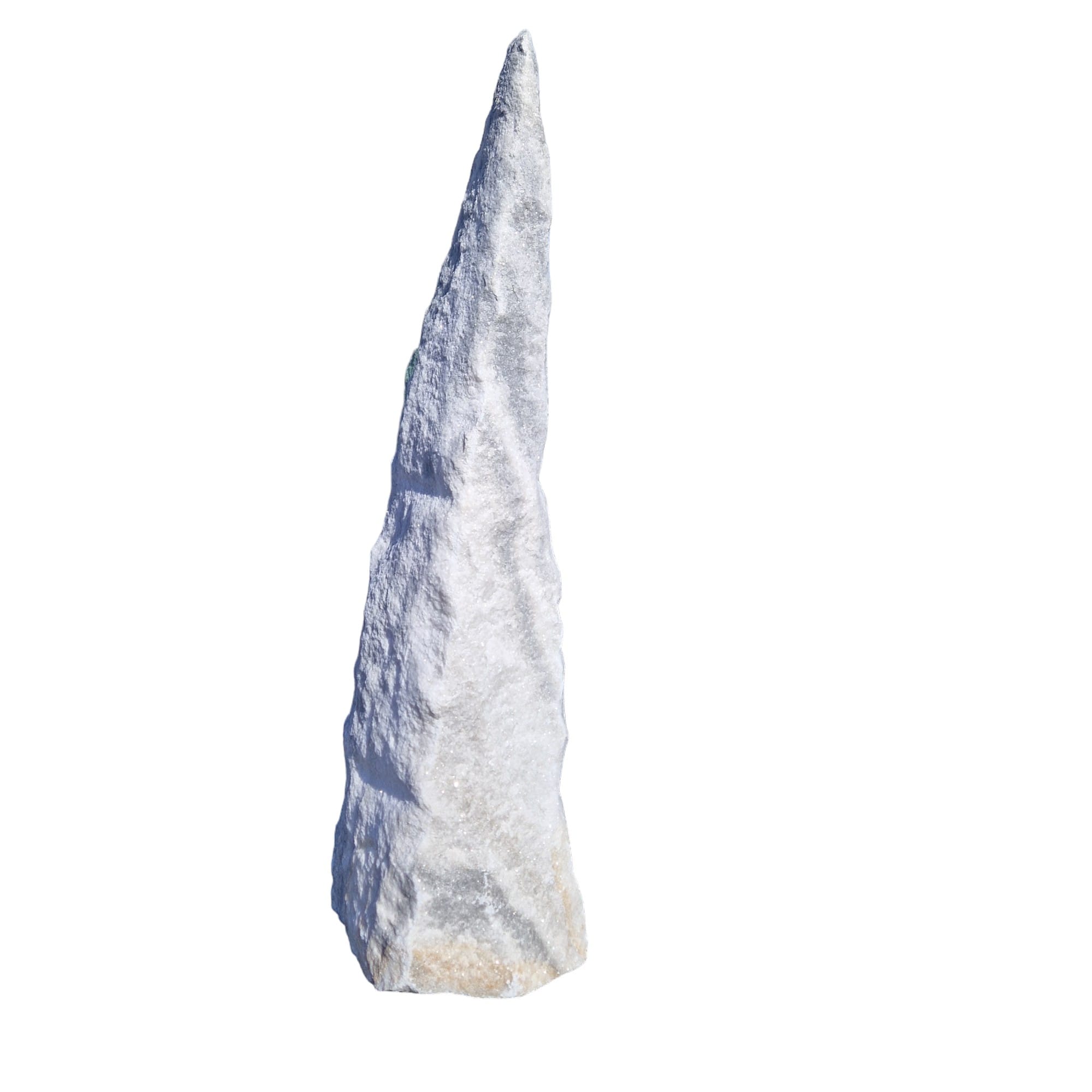 Kamień Monolit Ganga Stone to imponujący element ogrodowy wykonany z kwarcu, pochodzący z Indii. Jego podstawa jest starannie cięta, zapewniając stabilność w ogrodzie. Kamień ten wyróżnia się wyjątkową kolorystyką w pasy, obejmującą odcienie białego, szar