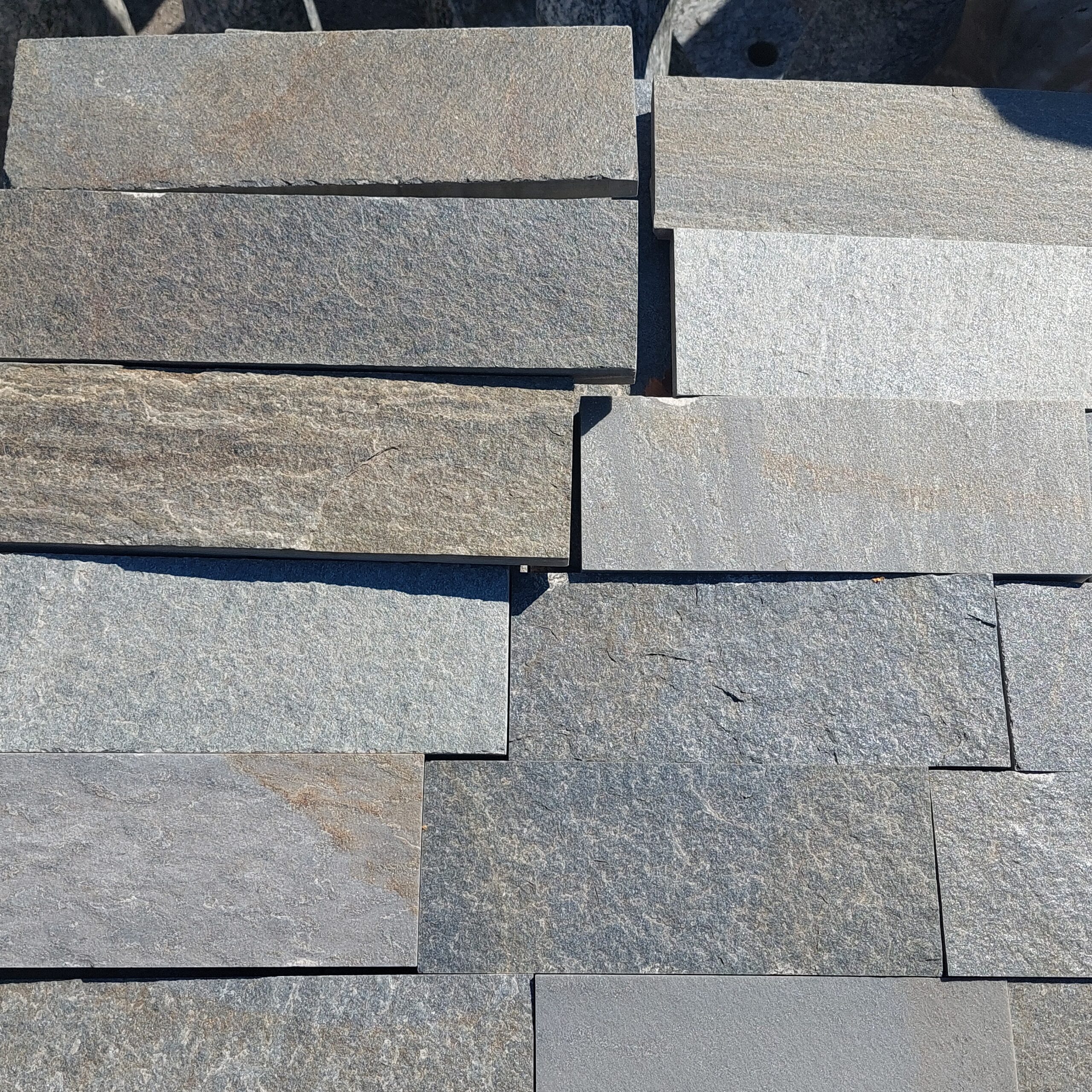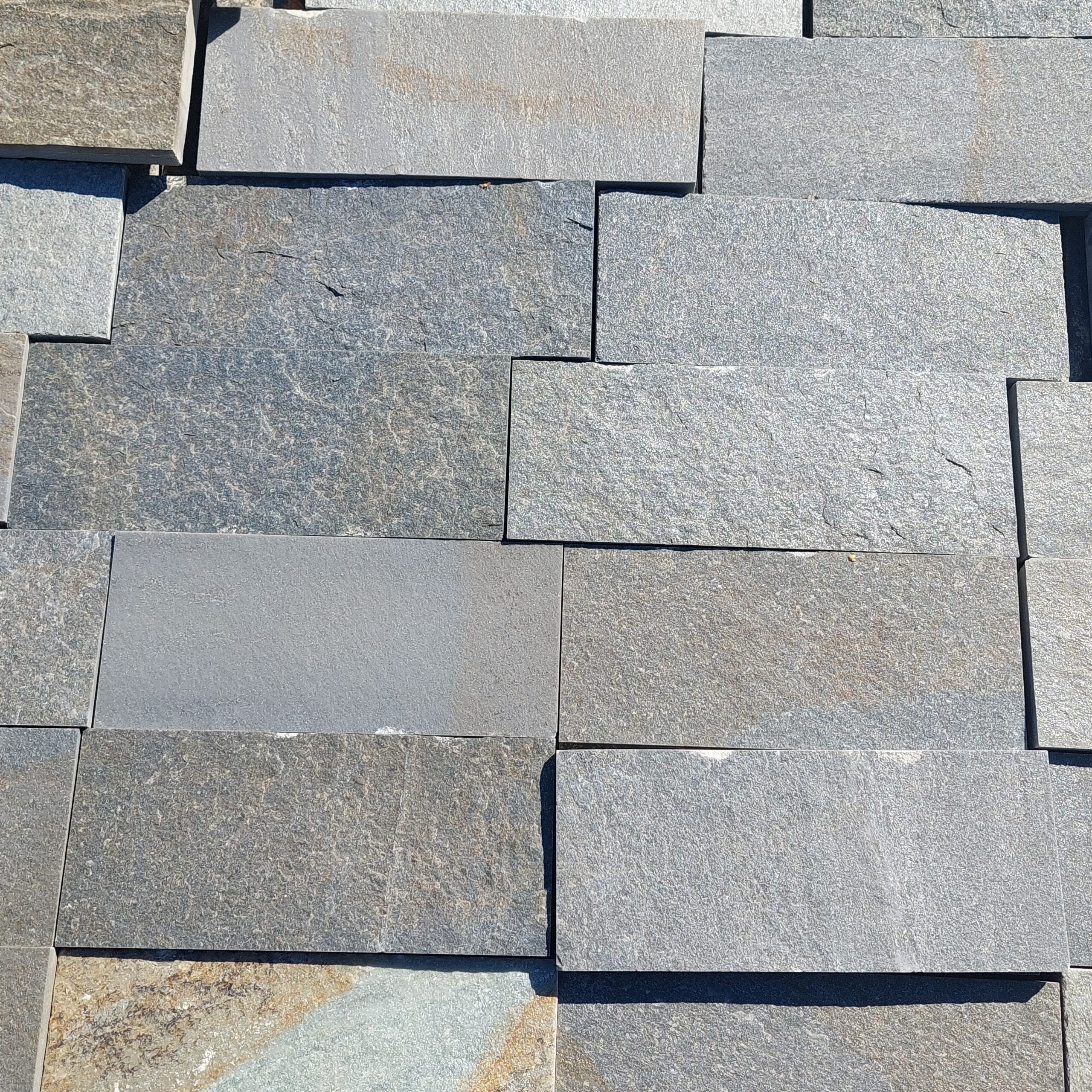 Płytki Gnejs KARYSTOS szerokość 10cm szaro- beżowy 1,5 do 2,5 cm grubości. Płytka z naturalnego kamienia. Jej grubość może się różnić od 1,5 do 2,5 cm – ma to związek z techniką łupania. Kolorszary, beżowy . Płytka cięta nadaje się doskonale na elwację budynku , w środku lub na zewnątrz.
