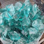 Stanowi oryginalną dekorację ogrodów. Świetnie sprawdzaja się jako ozdoba do gabionów. Unikatowe bryły zwracają na siebie uwagę dzięki niezwykłej strukturze i połyskowi. Szkło w kolorze turkusowym o wymiarach 8-18cm.